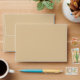 Coloured A6 envelope Beige. Add your return name and address and/or logo. Compare sizes at: wikipedia.org/wiki/Envelope