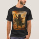 Epic Cowboy Cat Riding Dinosaur – Bold Watercolor T-Shirt