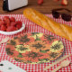 These oversized hand rendered hibiscus flowers are reminiscent of the flowers used in vintage aloha shirts in the forties and fifties. There are other home decorating items in the same design. The pattern comes in several colorways. The paper napkins coordinate with the paper plates.