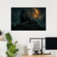 golden moon, surrounded by mystical mountain fog. This artwork from the