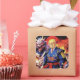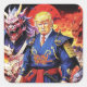 This captivating artwork depicts President Trump as a powerful samurai warrior standing confidently amidst a fiery backdrop. He is dressed in traditional blue and gold samurai armour, holds a katana and is surrounded by fierce, mythical demons. The intense red sky and flames add to the dramatic and fantastical atmosphere, making this image a striking representation of a heroic battle scene.