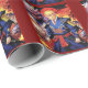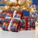 This captivating artwork depicts President Trump as a powerful samurai warrior standing confidently amidst a fiery backdrop. He is dressed in traditional blue and gold samurai armour, holds a katana and is surrounded by fierce, mythical demons. The intense red sky and flames add to the dramatic and fantastical atmosphere, making this image a striking representation of a heroic battle scene.