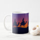 Epiphany is January 5 or 6. The three kings on camels on their way to Bethlehem. Night time, full moon, and a pink, orange, and purple sky.