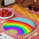 Equality is the Gold Under the Rainbow Paper Plate  ... This is entirely my own creation / design. I chose the precise colors. The sky is Robin Egg Blue. Perfect for 'same love' LGBTQ weddings / picnics. Perfect for June Pride parties. Buy yours here now while these are still in stock. Beautiful bold colors.