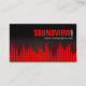 Perfect for a recording studio, dj or recording equipment retailer. Bright red bars from an equalizer glow against a rich black. A customised business name stands out in the same crimson with a portion of the business name perpendicular to the first part. Add customised information on the bright red reverse. Available in alternate colours with matching products.