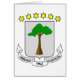 The national coat of arms of Equatorial Guinea was adopted on the 21st of August in 1979. This coat of arms shows a grey shield, which contains a tree. This tree is a silk cotton tree, or so-called "God tree". This is where the first treaty was signed between Spain and the local ruler. Over the shield, there are six six-pointed stars. They stand for the mainland and the five main islands.