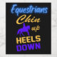 Equestrians Chin Up Heels Down in Blue Yellow Wine Label