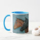These two baby horses have the sweetest expressions The chestnut foal is a filly and the black foal is a colt. They have very short and fluffy manes that show their age, but their muscle and bone structure is definitely on the way to being a fully grown black stallion and a beautiful chestnut mare. The portrait of these two little fouls really stands out against the vibrant sky blue background of this original horse painting. The original portrait was painted in soft pastel and I think it looks stunning on this quality tea/coffee mug. It’ll be a wonderful gift for all horse lovers or maybe you just want to treat yourself to a unique and special art mug. If you're interested in commissioning a pet portrait for yourself or as a special gift for someone, please don't hesitate to email me for further details. I look forward to "chatting" to you:)