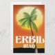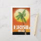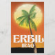 Erbil Iraq Travel poster of a hot setting desert middle eastern sun setting in the evening, there is a tall beautiful palm tree in the foreground.