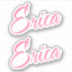 Erica name in cursive script font in pretty pink x2. Two copies of name.