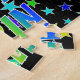 This lively and fun birthday-themed jigsaw puzzle design has the message "HAPPY BIRTHDAY, ERIN" with the characters having a colourful rainbow spectrum inspired gradient pattern, in addition to an exciting star field background pattern. A vibrant puzzle like this might be a fun way to acknowledge the birthday of somebody named Erin. [~Z0000468]