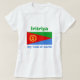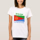 On the front of this shirt an editable title and slogan accompanies the Eritrean flag with its gold wreath in a red triangle with green and blue triangles. The back displays a detailed map of Eritrea.