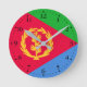 The clock did not take as long to arrive as I thought it might and was extremely well packaged. I didn't do the measurements so I didn't realize it is a little smaller than the average clock but that does not matter (just make sure you check if that's important to you).It is really nifty! It seems very solid and well made not flimsy at all. It has been going well and has kept good time in its few weeks on my wall. Nice product. Gets noticed too! Nicer in real life than the picture but true to the picture