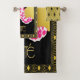 This towel set is quite flamboyant. I used and ERTE fashion design and framed with an Art Deco border. The hand towel is patterned only. Very Art Deco and very flamboyant. I would consider this set for a lady. It would certainly make a statement for your bathroom.
