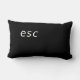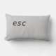 A grey/black pillow that looks like the esc or escape button on your computer keyboard