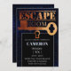 Escape Room Party Lock and Key Binary Code Black Invitation