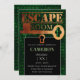 Escape Room Party Lock and Key Green Binary Code Invitation