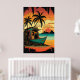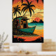 Sunset Paradise is an artistic and colourful tropical island, a true escape from the daily grind. The pop art deco style of the beach cabanas, surrounded by palm trees and coconut trees, sets the scene for relaxation and adventure. The coral reef and its diverse marine life are a delight for snorkelers and divers. The sound of the waves and the view of the clouds and the ocean, as well as the sun shining down on the island, create a seascape that is truly paradise. The sunrays, horizon, and sky are painted in a multitude of colours, making every sunset a breathtaking experience. Seashells and sand line the shores, a reminder of the island's natural beauty. Enjoy a true seaside vacation and soak in the island life