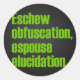 Eschew obfuscation, also stated as eschew obfuscation, espouse elucidation, is a humourous fumblerule used by English teachers and professors when lecturing about proper writing techniques. Literally, the phrase means "don't be unclear, be clear", but the use of relatively uncommon words causes confusion, making the phrase an example of irony, and more precisely a heterological or hypocritical phrase (it does not embody its own advice). It's a terrific t-shirt design that any English Geek would love!