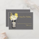 Perfect for a country style wedding or maybe you just love Mason Jars! Old vintage Mason Jar hanging on a hook with country wildflowers. A grey background with black drawing of a Mason Jar filled with Yellow wildflowers and White Daisies. If you have any questions on this design or want a colour change please email me paula@labellarue.com Also check for the MAIN INVITE, RECEPTION and RSVP Cards to match!