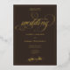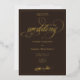 Set the tone for your celebration in style with this chic dark espresso brown and gold wedding invitation, featuring radiant gold foil lettering and gorgeous script calligraphy. Designed for timeless elegance, this invitation beautifully highlights your names, wedding date, and venue location in luxurious foil. Ideal for black-tie weddings, elegant soirées, or classic romantic ceremonies, this invitation is designed to make a grand entrance.