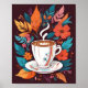 Espresso Coffee Cup wall art with colourful leaves