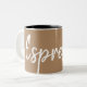 Coffee lovers espresso mug for your morning or afternoon cup of espresso coffee. With modern typography, this stylish mug is perfect for your workplace or home. Gift for coffee lovers with a coffee coloured background.