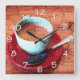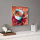 This 10.75 inch square clock is features this photograph of a colourful espresso cup with spoon merged with a word cloud design of espresso and double espresso text. Personalise it with your name, statement or slogan when you click Customise it! to add text in a font style, size and colour you like. Since the numbers are a template item you can remove it if you'd like this clock design without them.