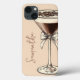 Espresso Martini Coffee Lover Personalised Brown iPhone Case features a soft brown background with a delicate line drawing of an espresso martini glass adorned with a bow on the stem, adding a touch of elegance and charm. A personalised brown script name sits stylishly beside the illustration, making this case both sophisticated and uniquely yours.