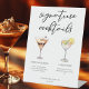 This chic signature cocktails list features simple black typography above 2 drinks and their ingredients for your wedding bar. An espresso martini and lemon drop drawing add a cool flair to your bar menu. Complete with the couple's names and date for their reception.