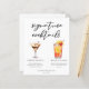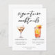 This sophisticated signature cocktails menu sheet features simple black typography above 2 of your favourite drinks and their ingredients for your coastal wedding bar. A chic Espresso Martini and Tequila Sunrise drawing add a fun flair to your bar menu. Complete with the couple's names and date for their reception.