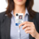 A basic business design that highlights your office logos and employee name. You can add a scan bar code on the front and back. You can also change the colour of the background.