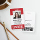 Identify essential personnel, employees, and workers with these custom photo template badges. Personalise these vertical badges with an employee photo and name, along with multiple custom text fields for title or role, company name, employee ID number, or valid through date. "ESSENTIAL" or your desired text appears along the bottom in bold white lettering for easy identification. Customise with a barcode on the back if needed, along with return information or other details.