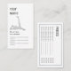 Price cards for Pilates Instructors. The design features an icon of a person performing Pilates. All text is fully configurable for the entry your own details. The back of the card has space for the prices of up to six items to be entered.