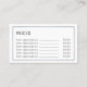 Price cards for writers, journalists, typists, etc. The design features an icon of a typewriter. All text is fully configurable for the entry your own details. The back of the card has space for the prices of up to six items to be entered.
