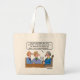 Estate Lawyer or Probate Judge Funny Large Tote Bag features cartoon depicting estate attorney holding last will and testament document speaking to deceased client's two male relative. Lawyer says, "Your late uncle names each of you in his will. By the way, which of you is the 'sniveling little weasel' and which is the 'no good nincompoop'...?" Humourous law profession bag might also make a nice gift for a paralegal or law student who plans to go into probate law and estate planning. If you're looking for funny lawyer gifts