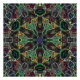 Digitally created meaningless star-shaped abstract composition of shapes and colors in an arrangement which pleased the senses of the artist.