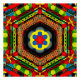 Digitally created meaningless star-shaped abstract composition of shapes and colors in an arrangement which pleased the senses of the artist.
