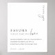 This favors sign features a modern calligraphy script heading and minimalist design. The script text heading is an image that cannot be edited. The heading image can be resized to fit any poster size. All of the other text is fully editable. For more advanced customization of this design, simply select the "Customize It" button above.