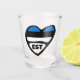 A cool, cartoon style heart design with the flag and the 3 letter country code of the country.