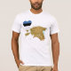 A heart shaped Estonian flag is placed next to a relief map of Estonia on this distinctively patriotic t-shirt.