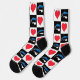 Fun patriotic socks for proud Estonian and anybody who loves the great nation of Estonia. Featuring a unique black and white chequered pattern with red hearts on the white squares, and the black squares filled in with a map of Estonia filled in with the Estonian national flag. These are a great way to show your love and support for Estonia.