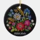 Estonian Christmas Ornament - Muhu Inspired Colourful floral design against black background. Features Merry Christmas written in the Estonian language - Häid jõule.
