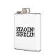 Well made flask, a little better than I had expected. Flask came in clear plastic box which gave it a nice presentation when I took it out of the zazzle packaging. Image is not printed on flask but on sticker. Don't know how this will hold up I haven't used it yet. This would make a Great gift! I plan to purchase more for friends! Cheers. I thought a little brighter than computer. Very crisp, writing wasn't
