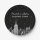 Etched NYC Skyline With the Emp St Building with Starry Sky, DIY Choose Your Own Background Colour Paper Plates