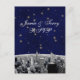 Customisable Invitations and accessories with a fish eye view of the iconic New York City skyline from the top of 30 Rockefeller Centre, featuring a black & white etched look view of the ESB, lower Manhattan including the WTC. They also feature a blue starry night background with gold and white stars.