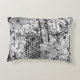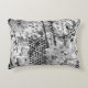 This throw pillow features an eclectic abstract that includes circles of zebra stripes. The colours range from grey (or grey) to charcoal to black.