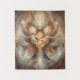 An intricate abstract representation of a nurturing figure cradling two children, composed of flowing lines and organic shapes. The image radiates warmth and harmony through its delicate blend of earthy and ethereal elements, with soft glowing orbs symbolising life and growth. Surrounding the central figures are patterns reminiscent of nature’s beauty, emphasizing the themes of love, protection, and the interconnectedness of life.