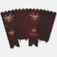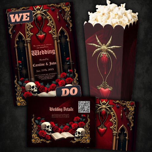 Eternal love in the shadows of darkness, in Gothic style. The focal point is a majestic Gothic archway decorated with delicate gold details and shining against a deep red background. The two elegant columns flanking the archway add a sublime touch to the design and emphasize the opulent design. The heart dangling gently from the archway draws the eye and is framed by a dripping blood effect,