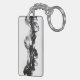Ethereal Abstract Black on White Fluid Art Key Ring